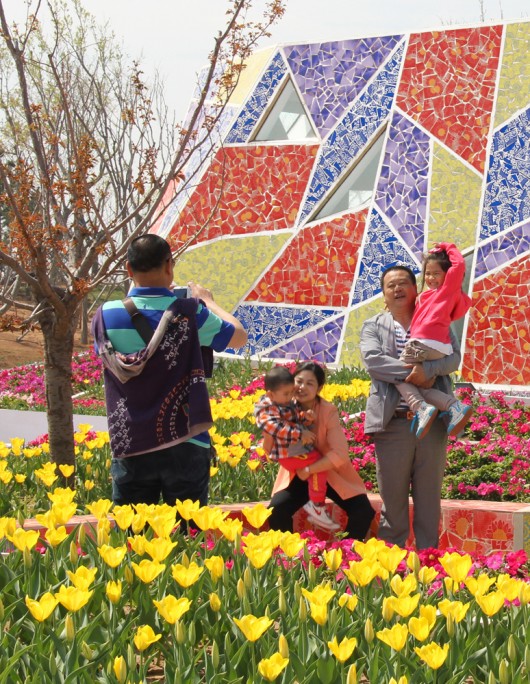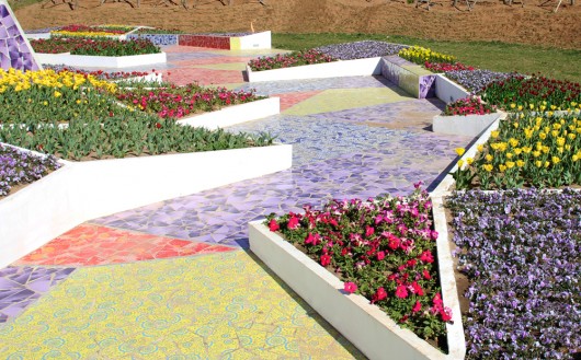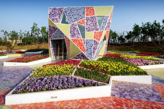 Bangunan ini dilapisi mosaik keramik beraneka ragam yang warnanya dipilih sesuai dengan aneka warna bunga disekitarnya.Bentuk bangunan sengaja di desain dengan sudut sudut yang berbeda yang menjadi perhatian bagi setiap pengunjung untuk obyek pemotretan.